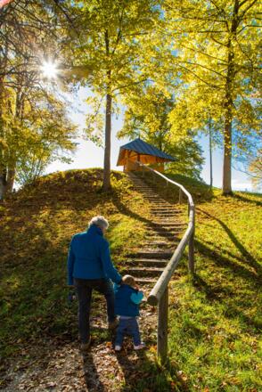 Je nachdem an welchem Punkt (z.B. Rathaus oder Osterhalde) Sie starten, folgen Sie einfach der Beschilderung Kurpark. Bereits auf dem Weg dorthin werden Sie einige schöne Aussichtspunkte finden. Schautafeln informieren zu den heimischen Bäumen, Sträuchern und Vögeln. Schlendern Sie gemächlich durch den Park, ruhen Sie sich auf einer der Bänke aus und lauschen dem Gezwitscher der Vögel.