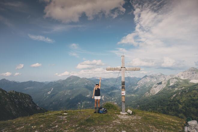 Bei der Vordergnadenalm auf der Schotterstraße eben durch den ebenen Talboden zur Hintergnadenalm und abwechselnd auf Straße und markiertem Steig zur Südwiener Hütte (1,5 Std.). Hinter der Hütte beginnt der Anstieg zum Spirzinger. Zuerst durchwanderst du eine feuchte Wiesenmulde und steigst dann über den latschenbewachsenen Hang und über einen Schotterweg weiter auf. Ein beschwerlicher Weg, der  sich jedoch mehr als lohnt.