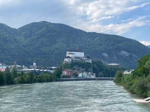 Von Bahnhof Kufstein folgt man dem Innradweg nach Erl (14 km) und biegt in Erl (kurz vor der Kirche) auf die Bergstraße Erlerberg ein und fährt bis zum Spitzsteinhaus (21 km). Danach führt der Steig abschnittsweise auch etwas steiler hinauf zum Spitzstein - neben dem Gipfelkreuz trägt der Gipfel auch eine Kapelle und einen Grenzstein. Bei der Abfahrt kann man über den Niederndorferberg nach Niederndorf fahren und dabei die wunderschöne, landwirtschaftlich genutzte Landschaft genießen. Von Niederndorf folgt der Rückweg wiederum dem Innradweg bis zum Bahnhof Kufstein.