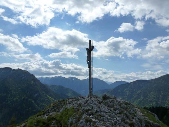 Gipfeltour mit atemberaubendem Ausblick vom Kofler auf Oberammergau und nach Süden Richtung Alpen.