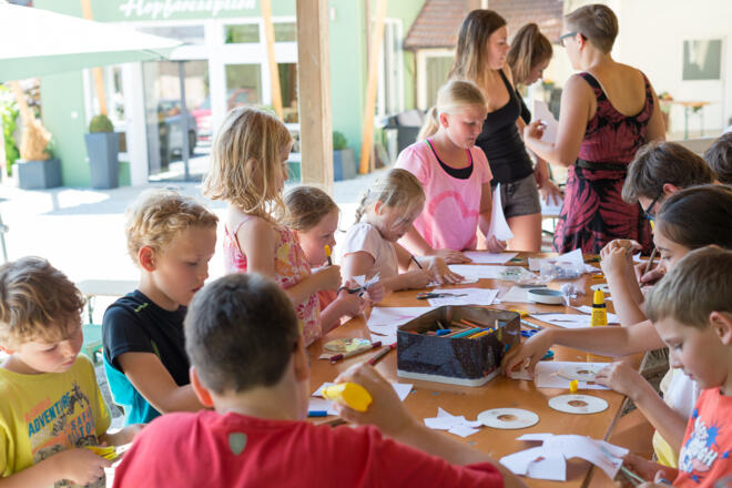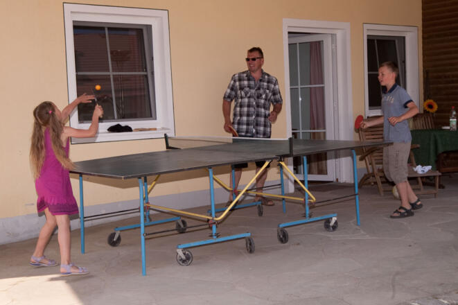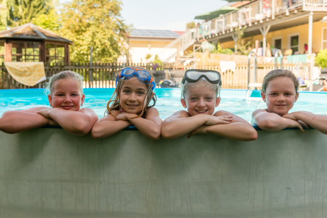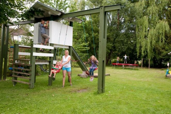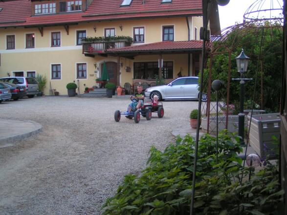 Wo sich Kinder wohl fühlen, können sich Eltern erholen: Kinderspielhaus mit Matratzenlager. Ereignisreiche Traktor- und Pferdekutschenfahrten. Riesen-Salatbuffet mit bayer. Spezialitäten vom Grill. Swimmingpool, Riesentrampolin, Beachvolleyball, Fußball.