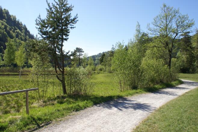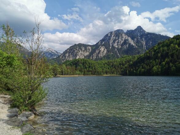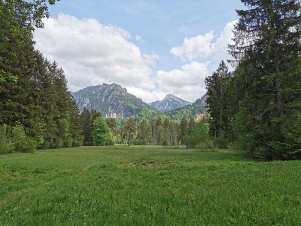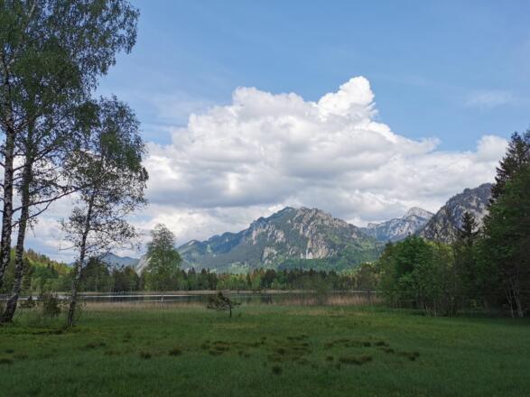 The landscape around Swan Lake at the foot of Hohenschwangau Castle welcomes you with surreality. Being declared a landscape conservation area, the uniqueness atmosphere in this historic park is still clearly noticeable today. From the car park in Alterschrofen, next to the road is a cleared footpath to the lake. Then you walk clockwise along the shore. From the beginning of the walk, you are already spoilt by the beauty of the view of both the castles Hohenschwangau and Neuschwanstein, plus the striking rocky mountains behind them served to you deliberately from the royal plate. Then the forest swallows you up as the north bank is shady. Furthermore, you can enjoy the sunlit moor meadows and the views of the reed covered bank at the end of the round.