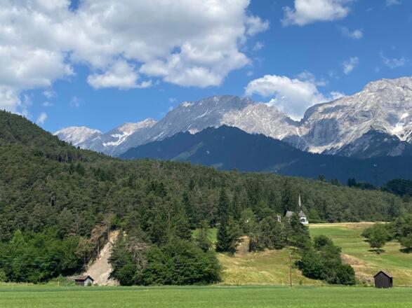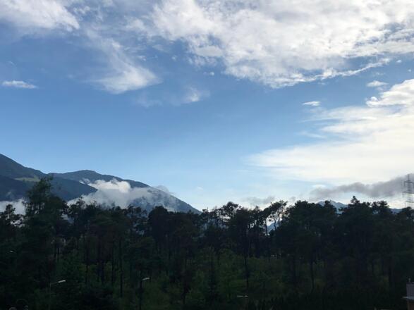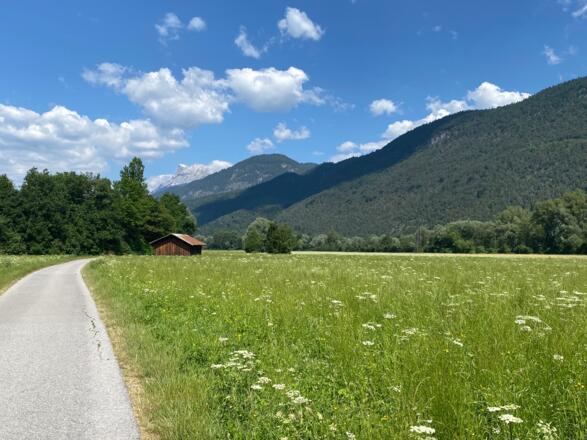 Ötztal Bhf. liegt in Haiming. Von dort geht es immer den Inntalradweg entlang. Bei Gegenwind kann es unangenehm werden. Der GPS Empfang war auf dieser Strecke nicht gut und der Track liegt nicht immer auf dem Inntalradweg. Wir steigen in Völs in den Zug. Es lohnt sich aber bis in die Innenstadt von Innsbruck zu radeln und den Trubel zu genießen.
