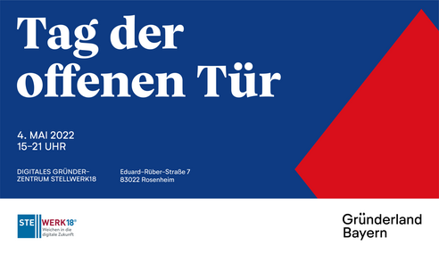 Das Stellwerk18 und Gründerland Bayern laden am 4. Mai 2022 zum Tag der offenen Tür. Dafür öffnet das Digitale Gründerzentrum in Rosenheim von 15-21 Uhr seine Pforten für alle Interessierten an Gründung, Unternehmertum, Digitalisierung und Innovation – von Schülern über Studierende bis zu angehenden Gründerinnen und Gründern und Start-ups. Eingeladen sind vor allem auch die mittelständischen Unternehmen der Region. Der Tag der offenen Tür bietet ihnen eine ideale Gelegenheit mit Start-ups in direkten Kontakt zu treten und das Netzwerk des Stellwerk18 kennenzulernen.