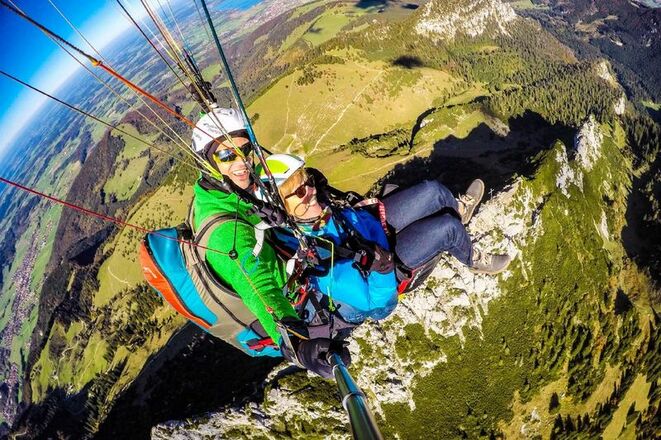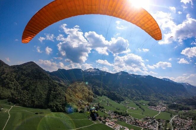 Einmal hoch hinaus und sich den Traum vom Fliegen erfüllen. Mit wenigen Schritten sanft über den Almwiesen abheben und lautlos über die Chiemgauer Berge gleiten und das Bergpanorama von oben genießen. Der "Kampenwand König" so nennt sich das maximalee Tandemflug Erlebnis im Chiemgau, mit einer Flugzeit von bis zu 60 Minuten und einem Zeitaufwand von etwa 2 Stunden. Alle Preise sind inklusive Versicherung und Ausrüstung.