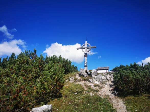 Hinter ihr weiter bis zu einem Gebetsmaterl und dort den Steigspuren auf dem Bergrücken hinauf folgen. Unschwierig erreicht man nach weiteren 20min den mit Latschen bewachsenen Rücken des Thaurer Zunterkopfs.