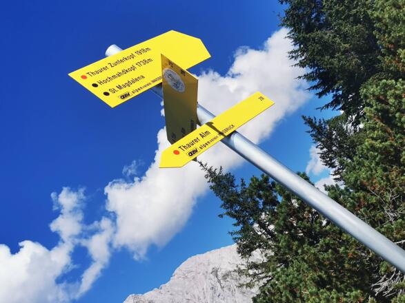 Von hier bieten sich viele Abstiegsmöglichkeiten. Zurück zum Ausgangspunkt gibt es allerdings nur 2 Möglichkeiten. Entweder direkt durch den Törl Schlung zur Thaurer Alm oder über den Hobacher Steig mit kurzem Retourweg zur Thaurer Alm. So oder so ist hier nun ersteinmal eine Einkehr fällig!