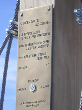den ersten Gipfel des Dreigestirns von Westen kommend, zierte bislang kein Kreuz. Das hat sich nun geändert. Die Bergrettung Ramsau hat am Dienstag, 29. September 2009, am Torstein ein Gipfelkreuz aufgestellt. Errichtet wurde es auch zum Gedenken an den Initiator, den erfahrenen Bergführer und Bergretter Albert Prugger, der im Juli tödlich verunglückt ist.