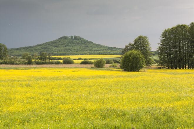 Eine Burgruine wie aus dem Bilderbuch. Von der um das Jahr 1525 zerstören Anlage haben mehrere Stockwerke des Wohnturms die Zeit überdauert. Sie liegt auf der höchsten Erhebung der Gegend, einem vor Millionen Jahren erloschenen Vulkan: dem Straufhain. Der Aufstieg lohnt sich, denn der Ausblick ist spektakulär.