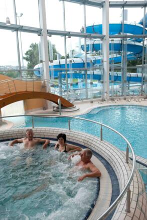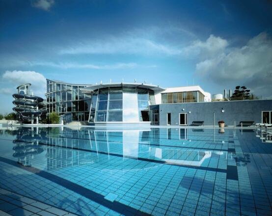 Das Funbad mit seiner 94 m langen Riesenrutsche und die fantasievoll gestaltete Badelandschaft garantieren Spaß und Unterhaltung für die ganze Familie. Im Wellnessbereich lässt es sich herrlich ausspannen und genießen, das Angebot an Fitnesskursen und die Freiflächen eröffnen Räume für die individuelle Programmgestaltung.