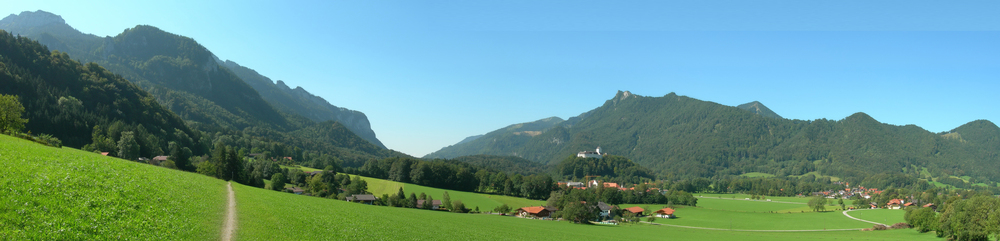 An der Tourist Info die Kampenwandstraße überqueren - nach rechts einige Meter in Richtung Hohenaschau gehen - dann sogleich wieder links in die Aufhamer Straße einbiegen - dieser folgen bis zum Kohlstattweg - diesem leicht ansteigend bis zum Parkplatz linkerhand folgen - kurz nach dem Parkplatz rechts in einen Spazierweg einbiegen - nun abwechselnd auf Schotter und Asphalt oberhalb von Aschau Richtung Hohenaschau entlang. Auf dem Weg bieten sich immer wieder schöne Ausblicke auf das Schloss Hohenaschau. Nach Erreichen der Staatsstraße auf dem Radweg zurück zum Ausgangspunkt.
