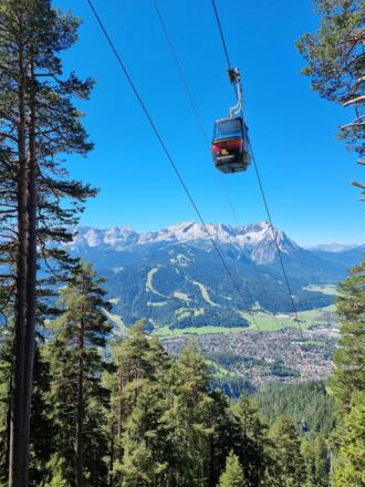 Am Gipfel des Wank kannst du im Wankhaus einkehren oder in der Sonnen-Alm in der Bergstation den Blick auf Garmisch-Partenkirchen genießen.