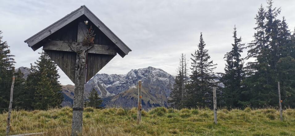 Von Sonthofen kommend bis zur Abzweigung in Hinang, wo es in Richtung Sonnenklause bergauf geht.