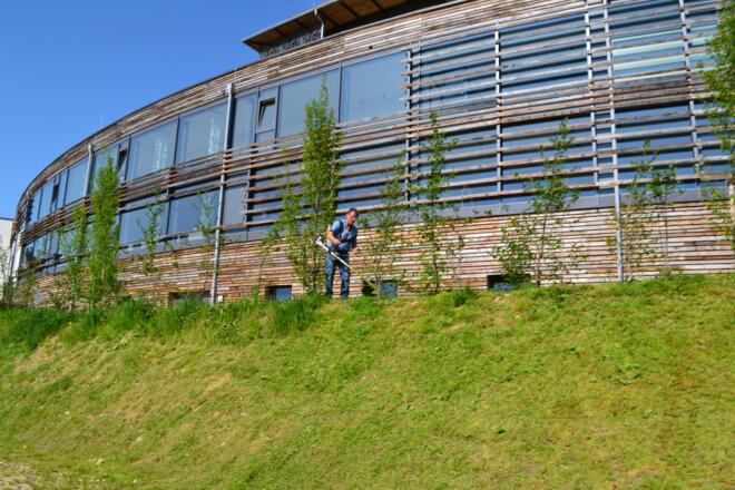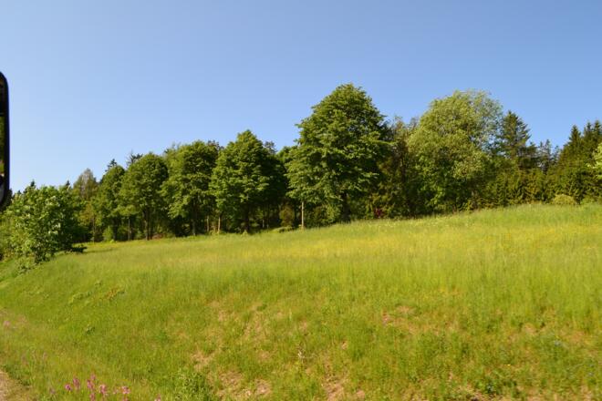 Am Heizhaus vorbei über die Wiese, links den Draxlweg hoch. Beim Transformator links, nach ca. 800 m (bei den 3 Garagen) rechts. Am Holzlager/Hirschgehege vorbei. Nach ca. 2 km den Schauberg hoch. Links am Photovoltaik-Park vorbei. Hier haben Sie einen schönen Ausblick nach Hauzenberg mit dem Staffelberg. Beim Haus mit dem Naturdach links nach Schauberg reinfahren. Im Ort gleich nach der Kapelle rechts abbiegen. Sie befinden sich auf dem Granit-Erlebnis-Wanderweg. Nach Schauberg, bei der großen Linde rechts die schmale Teerstraße den Berg hoch. Nach ca. 1,3 km bei der Hauptstraße (Sonnen/Hauzenberg) rechts abbiegen. Leicht bergauf bis Oberneureuth, ca 700 m, Richtung Flugplatz nach Oberneureuth.