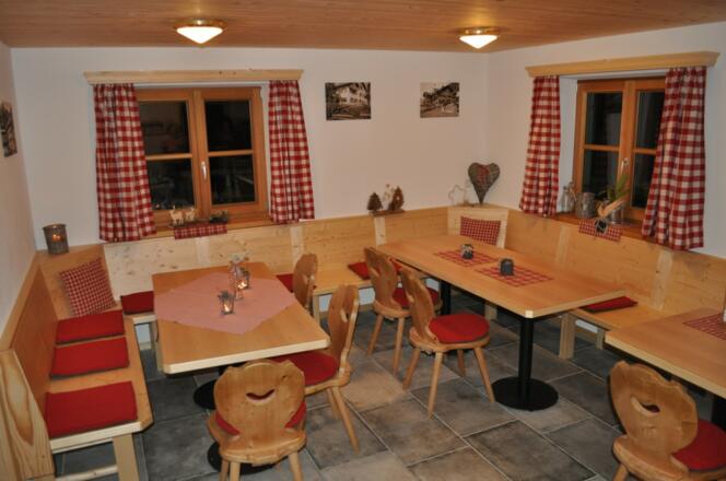Auf der neu erbauten Alpe können Sie auf der Terrasse oder in der gemütlichen Alpstube heimische Brotzeiten, Kuchen aus Dinkelmehl (Z.B. Omas Quarkkuchen) sowie Regionales & Selbstgemachtes genießen. Besonderheit von unserer Alpkuh mit Hörnern: Trinkjoghurt, Quark und Butter aus eigener Herstellung!