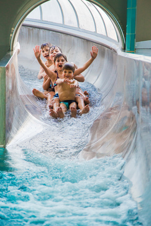 Das Vita Alpina verspricht nicht nur Entspannung, sondern bietet auch Spaß für die ganze Familie. Kinder lieben es, die Erlebnisrutsche und das Wellenbad mit Alpenbrandung zu entdecken. Für den großen und kleinen Hunger ist bestens gesorgt - die Gastronomie ist vom Bad aus zugänglich.