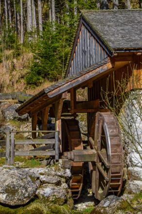 Gemütliche, kurze Wanderung zu einer wunderschönen Mühle am Schwarzenbachfall. Folgen Sie dem Alpen-Weitwanderweg Nr. 7 Richtung Gollinger Wasserfall.