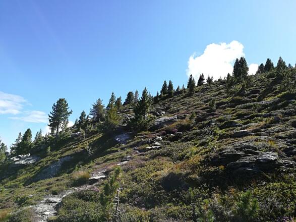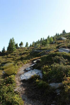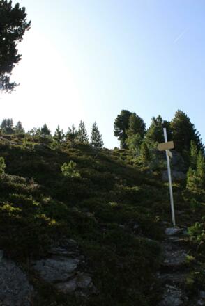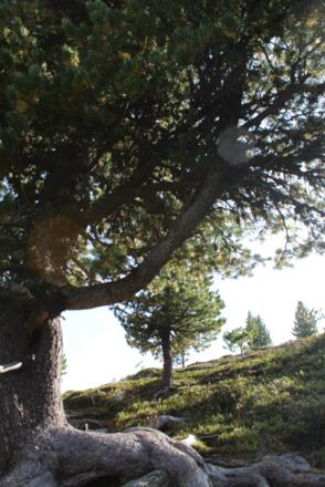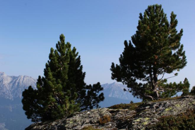Gemütlich Gondeln wir mit der Glungezerbahn bis zur Bergstation Tulfeinalm. Von dort geht es entlang des Bergrückens des Schartenkogels immer weiter hinauf bis zum Gipfel. Der Weg geht anfangs durch einen schönen Zirbenwald, der kurze Zeit später von riesigen Felsklötzen abgelöst wird. Durch diese Felsklötze folgen wir einem unschwierigen Weg, der uns das weite Panorama genießen lässt.