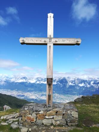 Am Gipfel angekommen genießen wir den Tief - und Ausblick bevor es wieder entlang der Forststraße runter zur Tulfeinalm und weiter zur Bergstation der Glungezerbahn geht.