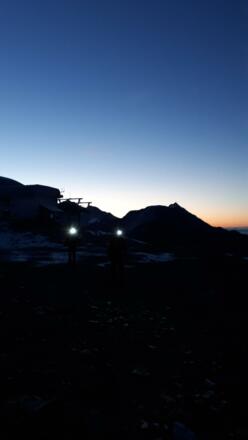 Gestartet wird in der Nacht von der Bella Vista Hütte in Richtung Teufelsegg Bergstation.