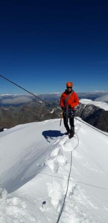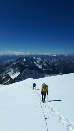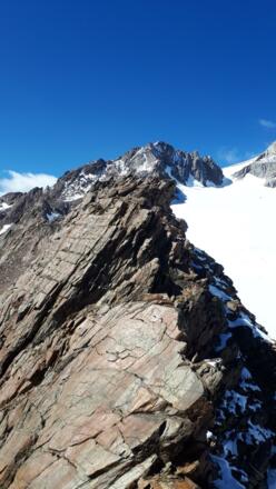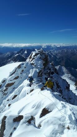 Nun weiter entspannt den Wundervollen Schneegrat zum felsigen Gipfelaufbau.