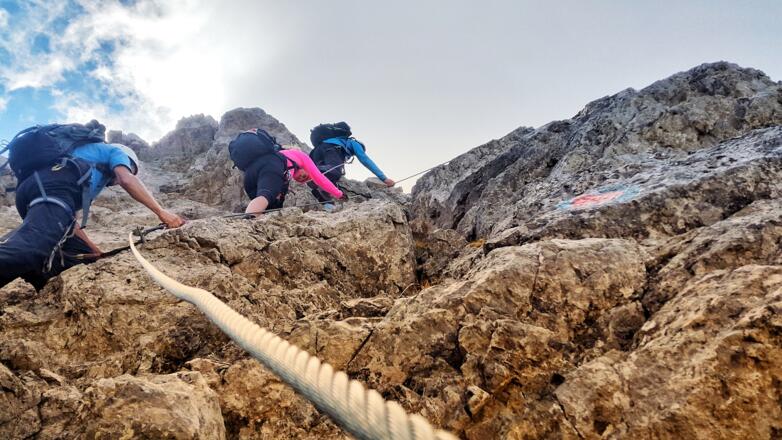 - Bei Gewitter den Klettersteig so schnell wie möglich verlassen (Blitzschlaggefahr)