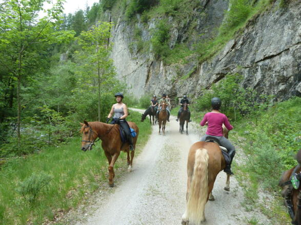 Die Benützung der Reitwege erfolgt auf eigene Gefahr. Landschaftlich reizvolle Elemente (Berge, Täler, Felsen, Schluchten…) sind natürliche Gefahrenstellen und erfordern Reserven bei der Zeitplanung.