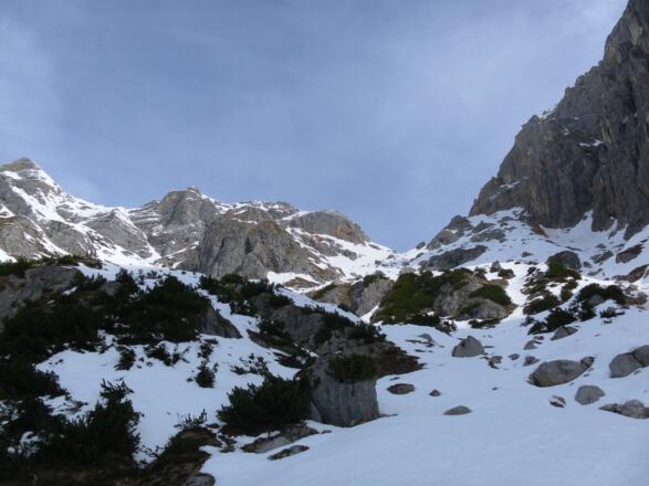 Erhöhte Lawinengefahr in den Steilhängen zur Buchauerscharte.