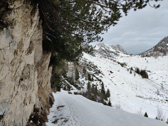Wanderausrüstung, je nach Schneelage Grödeln oder Schneeschuhe. Auch mit Tourenski möglich bei ausreichend Schnee.