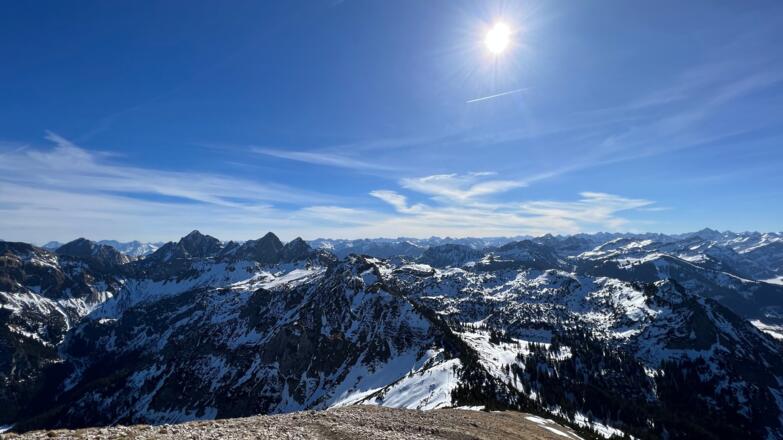Vom Parkplatz Lumberg ging es über die Sebenalpe zum Brentenjoch und über den Grat Weg Richtung Bad Kissinger Hütte und von dort wieder zurück zum Parkplatz. Die Tour wurde im Februar 2023 gelaufen, und die geringe Schneemengen sorgte dafür, dass diese Gipfelwanderung schon möglich war, allerdings mit Groedel! Mehr Infos demnächst auf: www.wandern-weit-mehr.de