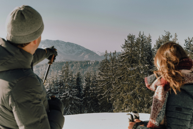 Die ersten Meter über die Forststraße hinauf, links über den alten Zwieselweg und Rodelweg im oberen Teil zum Blomberghaus und die fantastische Aussicht genießen.