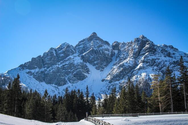 Im Aufstieg können wir uns entscheiden, ob wir über die Piste der Serlesbahn oder durch den nahegelegenen Wald gehen. Nach knapp 700 Höhenmetern erreich wen wir die Bergstation. Unter den Nordabbrüchen der Serles (2.717 m) queren wir entlang des Winterwanderweges nach Maria Waldrast hinüber.