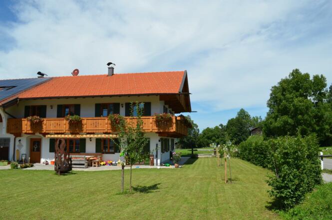 Unsere 50 m² große, neu gebaute Ferienwohnung befindet sich im 1. Stock im Nebengebäude unseres Bauernhofs und ist durch einen separaten Aufgang erreichbar. Auf dem großen Balkon (S/O) können Sie bereits am Morgen die Sonne und den Blick auf die umliegenden Berge genießen. Die Ferienwohnung ist optimal für 2 Personen oder kleine Familien. Ein Babybett kann auf Anfrage gerne gestellt werden. Die Wohnküche ist voll ausgestattet (Kühlschrank mit Gefrierfach, Backofen, Ceranfeld, Spülmaschine) und bietet eine Essecke für gemütliches Beisammensein. Die Couch kann ausgezogen werden und ist optimal als Schlafgelegenheit für zwei Kinder oder einen Erwachsenen.